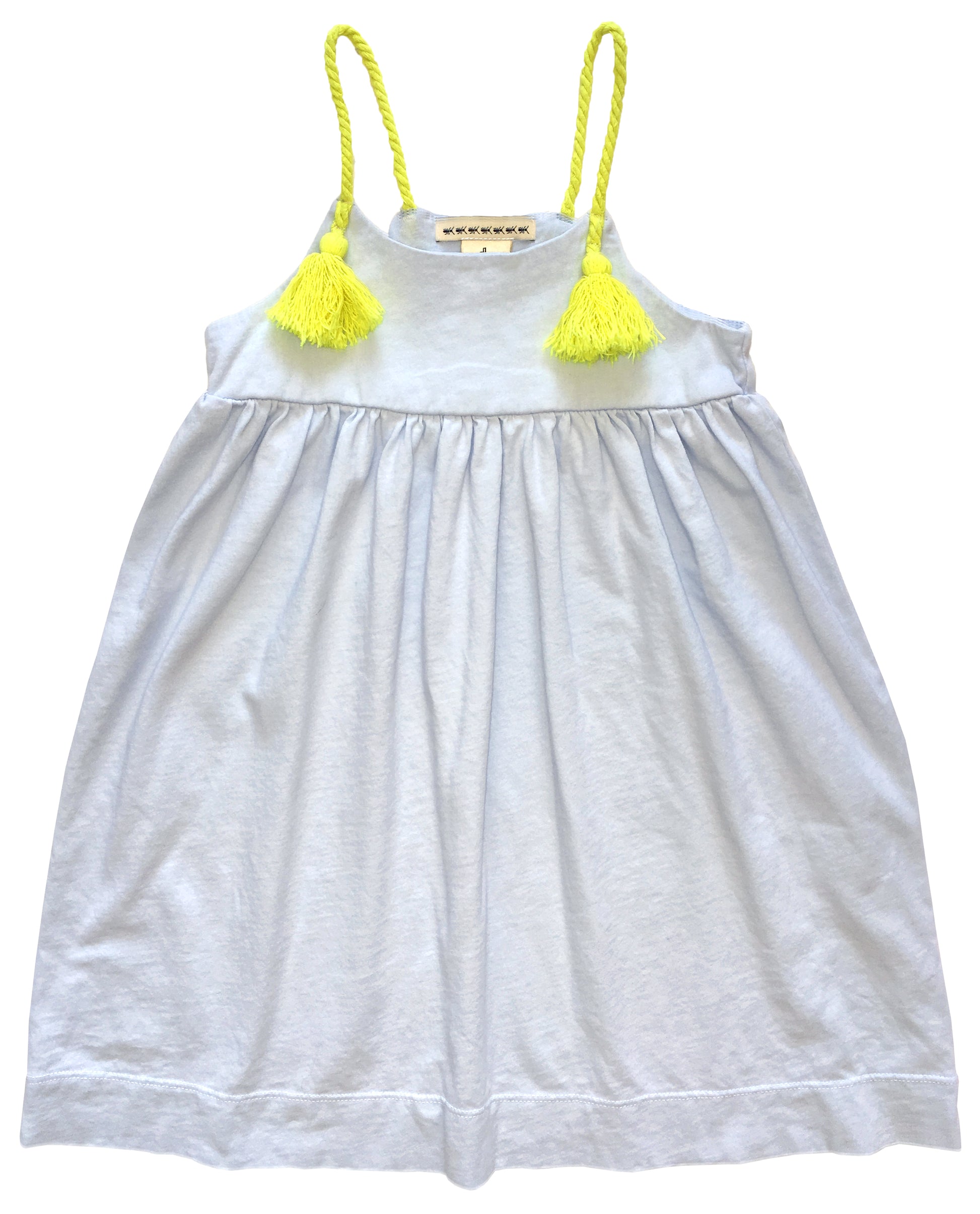 This super soft 100% Cotton sundress is perfect for every day wear. It features neon rope straps with a tassel detail.