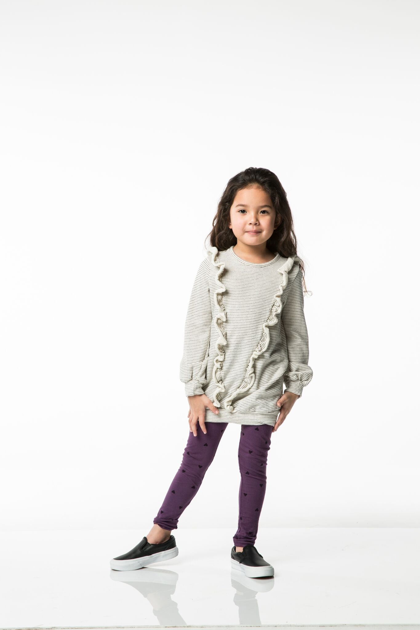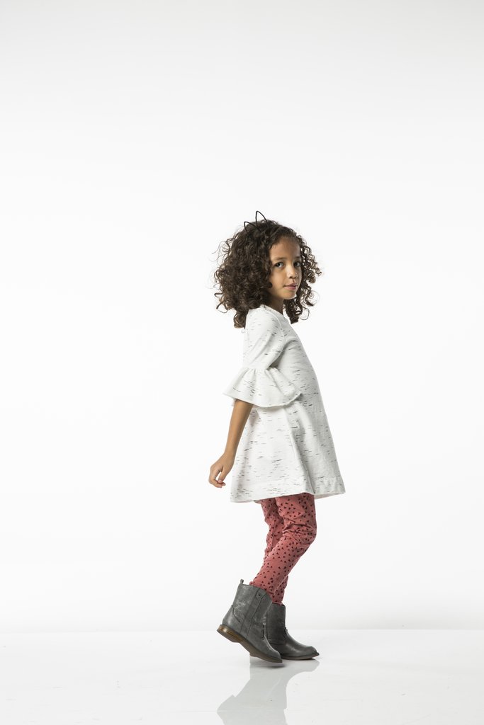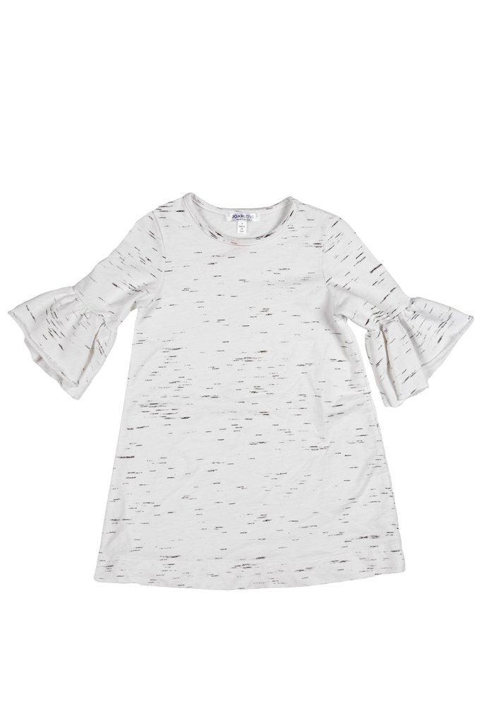 A marbled french terry dress that is stylish and comfortable. Features flounce sleeves and pairs perfectly with our Joah Love heart print leggings.